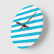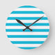 Classic and modern striped vivid cyan and white Round Clock. Simple and clean design for a timeless appeal.