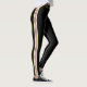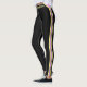 Trendy 3-Stripe leggings with violet and yellow stripes on black background. This striped design is meant to make you appear slender. Text "Om sacred Om" on the front side can be personalised. ideal for everyone.