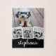 Trendy 4 Photo Collage Script Name White Black Jigsaw Puzzle