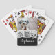 Trendy 4 Photo Collage Script Name White Black Playing Cards