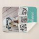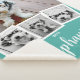 Trendy 4 Photo Collage Script Name White Teal Sherpa Blanket