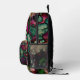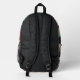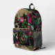 This vibrant and unique backpack is a perfect blend of style and functionality. It features a mix of green, pink, purple, and black colours, creating an eye-catching pattern that stands out. The pattern is further accentuated with yellow dots and lines, adding a touch of whimsy to the overall design. The fully customisable name is elegantly written in yellow cursive letters on the top, adding a personal touch to the design. This colourful and personalised design makes the backpack not just a utility item, but a fashion statement.