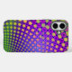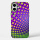 This case has a design with trendy decorative patterns. The main colours are purple, green and yellow. This product can be customised by adding text.