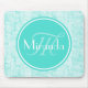 Trendy Aqua Mint Crackle Pattern With Monogram Mouse Mat