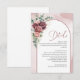 Popular now design for boho Wedding Rsvp features deep red marsala flowers roses mixed blush ping French roses mixed fresh eucalyptus greenery foliage and woven into boho arch . Hand drawing script lettering.