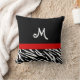 Trendy Black and Red Zebra Stripe Monogram Pillows
