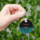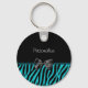 Trendy Black And Teal Zebra Print With Ribbon Key Ring