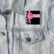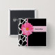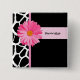 A stylish women's fashion button with a trendy black and white giraffe pattern embellished with a girly pink daisy flower. Personalise by adding your name to this modern design. Perfect for the chic fashionista.