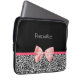 Trendy Black And White Leopard Print Pink Ribbon Laptop Sleeve