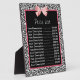 A cute and trendy leopard print retail price list sign with a modern black and white leopard pattern and embellished with a printed girly pink ribbon. Personalise by adding the name of your boutique and price list to the custom text template areas of the plaque. Flat printed image, not actual ribbon.