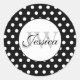 Trendy Black and White polka dots pattern Monogram Classic Round Sticker