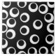 This item has a retro print pattern of circles in black and white. A funky stylish pattern.