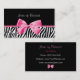 Trendy Black And White Zebra Print Pink Ribbon Business Card