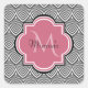 Trendy Black Arched Scallops Pink Monogram Name Square Sticker