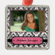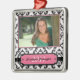 This square premium graduation photo ornament has a black and white damask background. On the front, you can add your own photograph, and personalise the name and year of graduation.