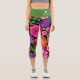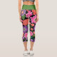 Trendy Black Floral Pattern with Custom Monogram Capri Leggings