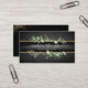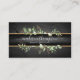 Elegant fancy business cards featuring a rustic black background, a stylish gold glitter border, gold & watercolor greenery, signature script, and a professional text template that is easy to personalise. These can be used for a variety of professions including a hair stylist, makeup artist, florist and much more.