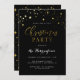 Trendy Black & Gold Star Confetti Christmas Party Invitation