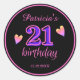 Trendy Black Pink And Purple Heart 21st Birthday Classic Round Sticker