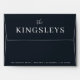 A stylish, trendy modern holiday envelope with your surname featured in classic typography paired with handwritten script in white a gorgeous dark blue off black feature colour. A striking minimal design to stand out from the crowd this christmas season!