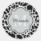 Trendy Black White Giraffe Print Monogrammed Name Classic Round Sticker