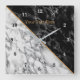 Trendy Black & White Marble Stone - Add Your Text Square Wall Clock