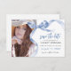 Elevate your graduation celebration with our chic and trendy graduation save the date cards. Sporting a sophisticated watercolor blue ribbon tied into a bow, and your favorite photo, these invites eloquently merge style and elegance. Our easy-on-the-fingers personalization feature makes it a joy to invite your loved ones. Plus, digital download option available for those who love a good blend of modern and traditional.