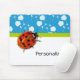 Trendy Blue Floral Ladybug With Name Mouse Mat