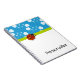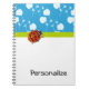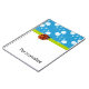 Personalise by adding your name to this trendy blue and white floral pattern with a green stripe and a cute red spotted ladybug.