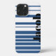 Trendy Blue Striped Custom Name iPhone Case