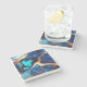 Trendy Blue yellow Gold faux marble Stone Coaster