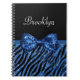 Trendy Blue Zebra Print FAUX Glitz Bow With Name Notebook