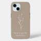 Our Trendy Boho Chic Minimalist Mushroom Brown Personalised iPhone Case, a perfect blend of elegance and contemporary style for your phone. This case features a modern minimalist design with a neutral mushroom brown background, complemented by trendy typography and a delicate flower drawing. The stylish monogram adds a personal touch, making it a sophisticated and classy accessory for any woman.