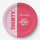 Trendy Bold Pink and Red Girly 30th Birthday Paper Plate