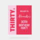 Trendy Bold Pink and Red Girly 30th Birthday Sign