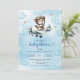 Trendy Boy Shower Teddy Bear Pilot Blue Brown Invitation