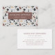 Chic, trendy business cards featuring a brown, dark green, gold, and grey blue terrazzo pattern on the front with your name/business name and industry. The back of the terrazzo business card features your name, job title, and contact information in brown text with a white background. Perfect business card design for interior designers, bloggers, artists, hair stylists, event planners, and more!