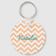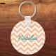 Hip and modern Trendy Chevron Keychain. This cool keychain features a chevron zig zag pattern in coral and white. Add text to this design to give it a personal touch.