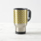 Hip and modern Trendy Chevron Travel Mug. This cool mug features a chevron zig zag pattern in yellow and white. Add text to this design to give it a personal touch.