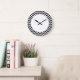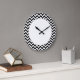 Hip and modern Trendy Chevron Wall Clock. This cool clock features a chevron zig zag pattern in black and white. Add text to this design to give it a personal touch.