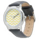 Hip and modern Trendy Chevron Watch. This cool watch features a chevron zig zag pattern in yellow and white. Add text to this design to give it a personal touch.