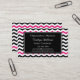 Modern and trendy chevron business cards feature black and white chevron stripes and two pink chevron stripes on the front and back and a black accent frame for your information on the front. Stand out with these unique business cards. Perfect for variety of business types and professions. Available in a variety of colours and card stocks. Customise with your personal or business information. Click the "Customise it!" button to change the font style, text size, text colour and more!