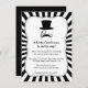 Look sharp, prim and proper with a touch of whimsical and fun with this trendy and chic black baby boy shower invitation. It features a simple design of elements of a gentleman which includes a top hat, a monocle one piece reading glass and a curly moustache. Black and white is contrasting, unique and outstanding for a baby shower invitation. Personalise easily with your party details.