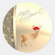 Trendy Christmas Reindeer Santa Hat ,Faux Gold Classic Round Sticker