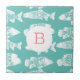 Trendy white floral patterned bohemian fish patterned decorative tile. Personalise the monogram letter.