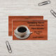 Trendy Coffee Cup Wood Background Business Card