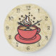 Coffee lovers trendy wall decor clocks designed with a trendy cup of coffee graphic for your kitchen, bathroom, or any room in your house you want to add some food and drink related decoration.