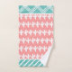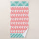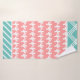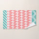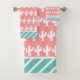 Trendy coral pink and sea green white cactus and geo patterned bath towels set.