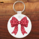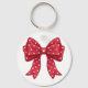 Trendy Coquette Red Ribbon Bow with White Hearts Key Ring