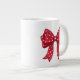 Trendy Coquette Red Ribbon Bow with White Hearts Large Coffee Mug